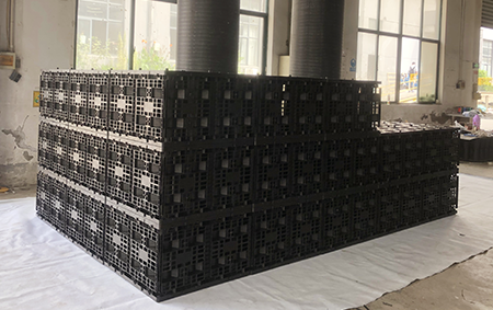 調(diào)蓄模塊埋地后,可快速?zèng)_洗,排除淤泥,確保了水質(zhì)。