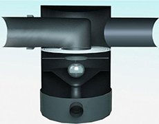 雨水棄流裝置主要應(yīng)用在雨水收集利用系統(tǒng)中。在流經(jīng)初期氣流裝置時(shí),因重力的作用,雨水將首先通過(guò)低位敞口的排水污管排放掉。在雨量增大時(shí),打在擋板上的壓力增大,位于排污管上端的浮球在水流壓力的作用下將排污管關(guān)閉,進(jìn)行收集。