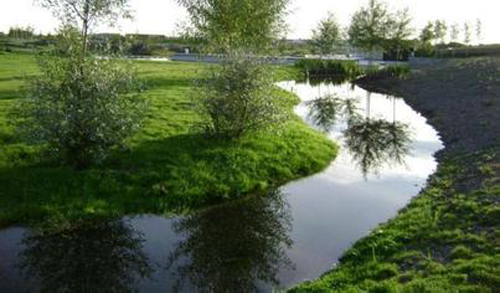 結(jié)合景觀水景要求設(shè)計(jì)人工湖,包括初級(jí)凈化池、次級(jí)凈化池、清水池。雨水利用時(shí)主要從清水池用泵抽取,供附近的沖廁用水以及補(bǔ)充山地綠化灌溉用水;少量溢出的雨水排入市政雨水管。湖水的常水位標(biāo)高比溢流口低10cm,而駁岸的標(biāo)高則根據(jù)常水位來(lái)設(shè)計(jì)這樣處理可以使降雨蓄存量增加,保證至少單次降雨量在50mm以下時(shí)不會(huì)產(chǎn)生溢流,既保持了平時(shí)湖水充盈的親水效果,又為雨季蓄水打下了基礎(chǔ)。在人工湖設(shè)計(jì)有若干水生植物種植池,這些種植池在豐富湖區(qū)景觀的同時(shí),也承擔(dān)著沉積雨水帶來(lái)的泥沙的作用。為保證湖水清潔,防止水質(zhì)惡化,中水處理系統(tǒng)對(duì)湖水進(jìn)行循環(huán)處理,同時(shí)為公園里其它綠地噴灌系統(tǒng)提供水源,使得匯集的雨水得以充分利用。